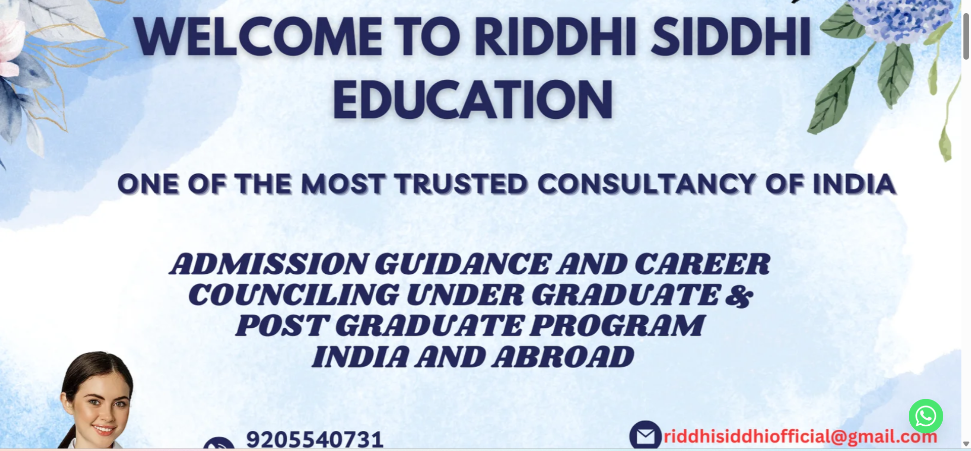Riddhi Siddhi Education found its roots in 2007 with a motto to provide Education Guidance and Assistance in Admission to students in India as well as Abroad. Later on with time it got its name and with time it was developed into a well-known organisation. We have been serving our clients to choose a specific professional course after completing their schooling, by providing them the knowledge of various courses and streams like Medical, Engineering, Law, Journalism, Pharmacy, Nursing etc. Its not only about the graduate and post- graduate program, we have also assisted many parents to get their child admitted in schools and boarding schools. Our unique assistance service has helped many students in getting them through their Dream College/University and reaching their goals.