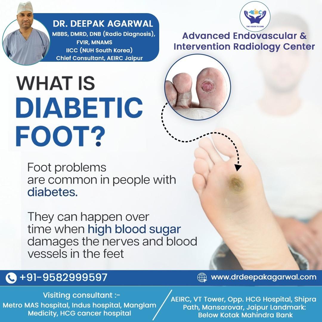 馃寪 https://www.aeirc.co.in/What is Diabetic Foot? The Silent Threat to Your Mobility. 鈿狅笍 Foot problems are alarmingly common in people with diabetes. This condition develops over time when high blood sugar damages the nerves and blood vessels in the feet. This damage can lead to loss of sensation, wounds that don't heal, and serious infections, potentially threatening the limb. Dr. Deepak Agarwal, expert Interventional Radiologist in Jaipur, specializes in diagnosing and treating the vascular issues related to Diabetic Foot using advanced endovascular procedures. Seek timely intervention! Consult our expert today for better treatment and prevention. 馃摓 +91-9582999597 馃寪 https://www.aeirc.co.in/0 Comments 0 Shares