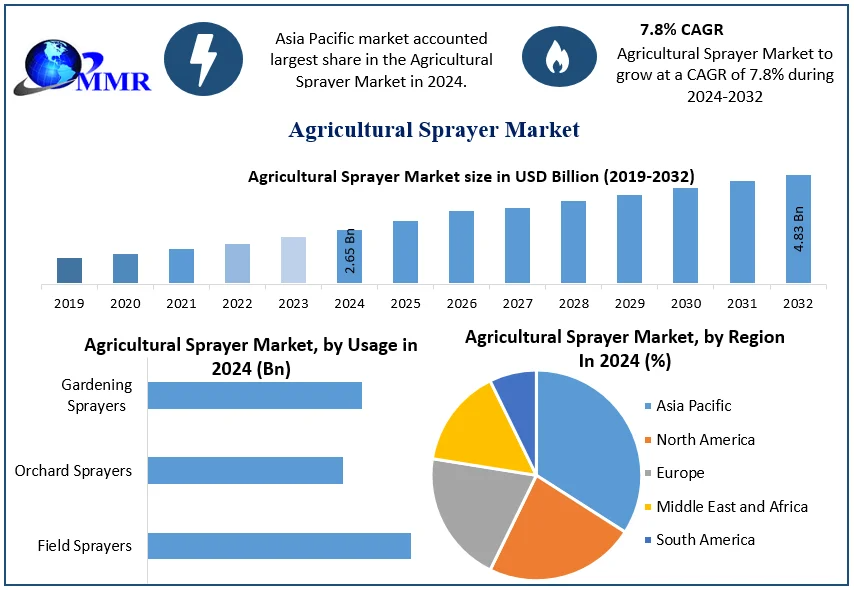 The market research report for Agricultural Sprayer provides comprehensive information on important factors, such as those that are expected to drive the industry growth and future obstacles. This report provides stakeholders with a thorough understanding of the investment opportunities, product offerings, and competitive landscape of the Agricultural Sprayer industry. Furthermore, it is covered in the research are the sector quantitative and qualitative aspects. Within the framework of the MMR research, regional markets for the Agricultural Sprayer Market are evaluated in great detail.