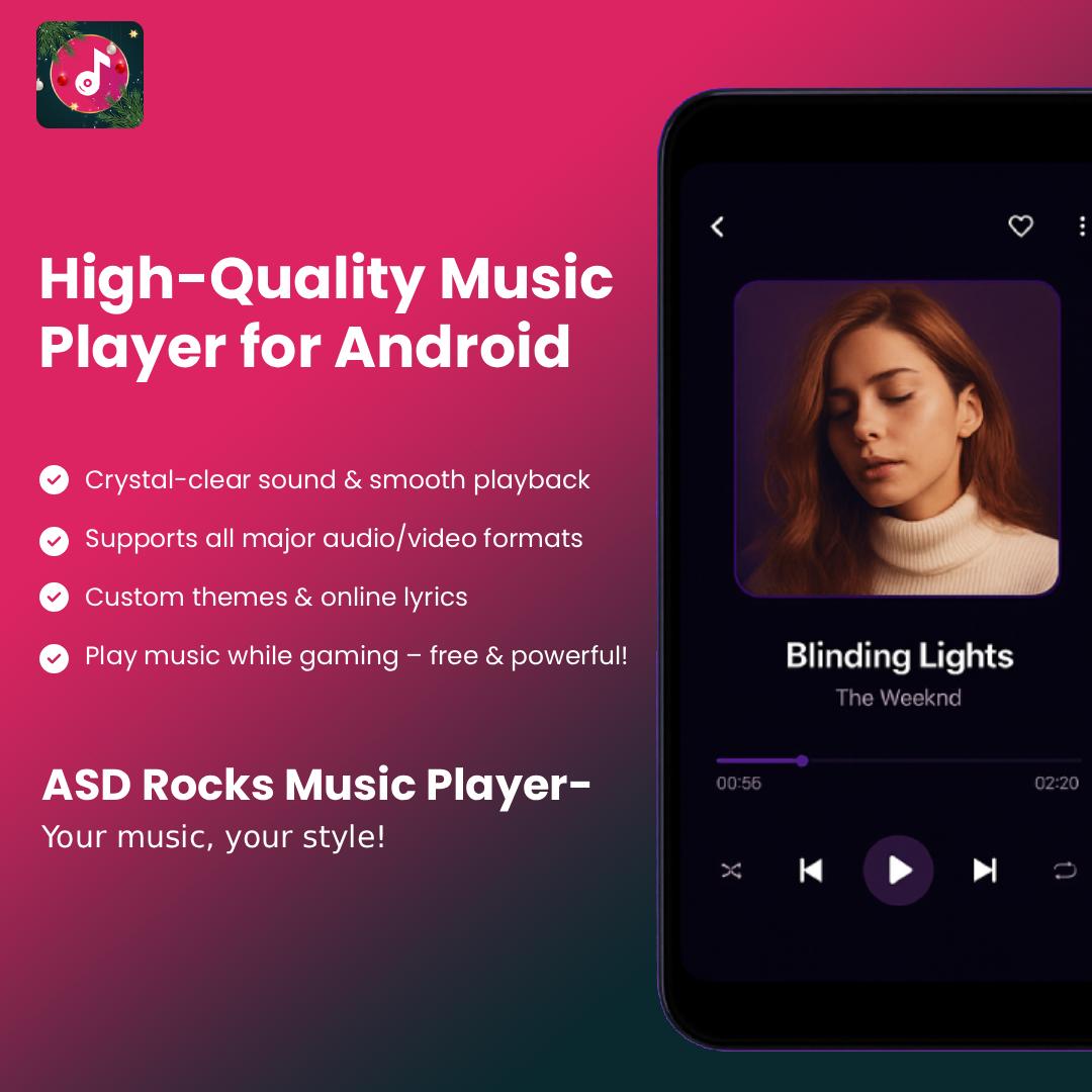 Finding a reliable, high-quality music player that delivers excellent sound, sleek design, and advanced features — all for free — can be a challenge. That’s where the ASD Rocks Music Player stands out. Designed to give you the best listening experience on Android, this all-in-one app combines stunning audio clarity with rich features that go beyond just playing songs.