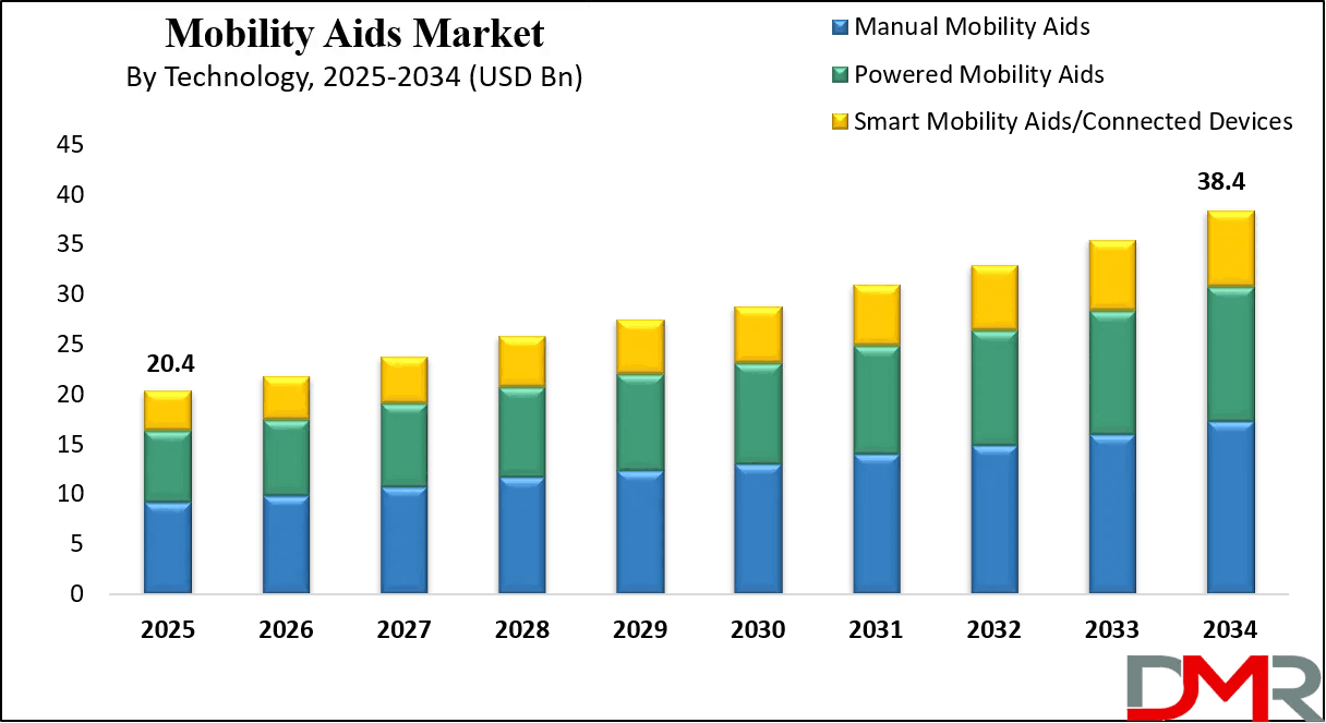 The Global Mobility Aids Market continues to expand as demographic changes and technological advancements shape consumer needs and industry innovation. With the market projected to reach USD 38.4 billion by 2034, conditions such as arthritis, spinal cord injuries, Parkinson’s disease, and age-related mobility challenges are contributing significantly to rising adoption rates. Increasing global life expectancy and the growing elderly population create sustained demand for devices that support day-to-day movement, reduce caregiver burden, and enable greater independence for individuals with limited mobility. The availability of diverse products—including manual wheelchairs, powered wheelchairs, walking frames, canes, crutches, stairlifts, and mobility scooters—ensures that users have access to tailored solutions that meet their medical and lifestyle needs.