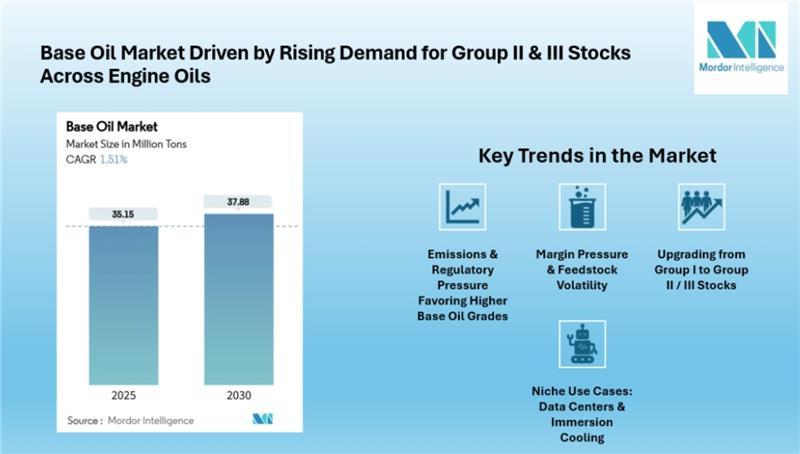 Beyond mobility, the base oil sector is witnessing nascent demand from immersion-cooling fluids used in high-performance data centers and AI workloads. These dielectric oils dissipate heat far more efficiently than air, offering energy savings. Some suppliers see this as a long-term opportunity for specialty base-oil grades.