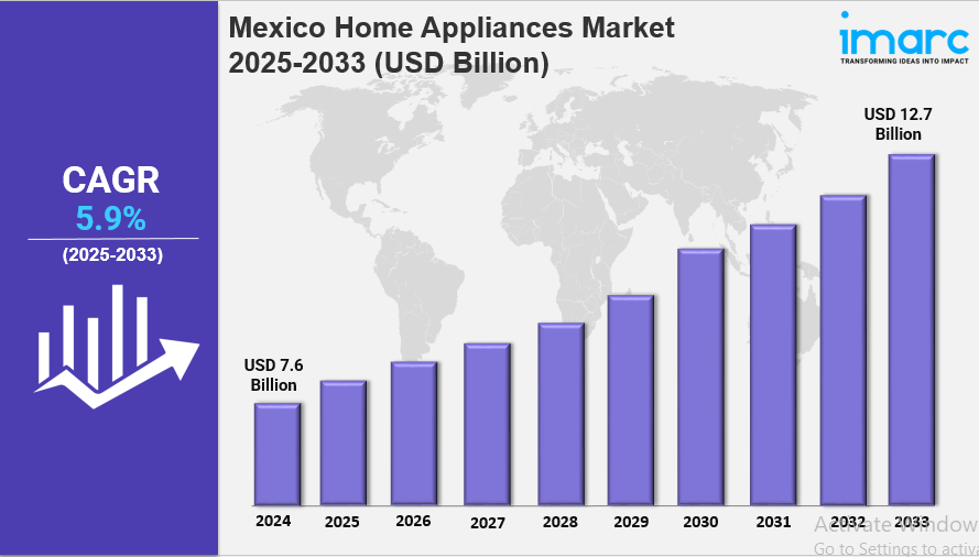 The Mexico Home Appliances Market size reached USD 7.6 Billion in 2024. The market is expected to grow to USD 12.7 Billion by 2033, registering a CAGR of 5.9% during the forecast period 2025-2033. Growth is driven by the rising adoption of smart and connected appliances, increased emphasis on energy-efficient products, expansion of e-commerce and digital retail channels, and urbanization and modern housing development. For more details visit the Mexico Home Appliances Market