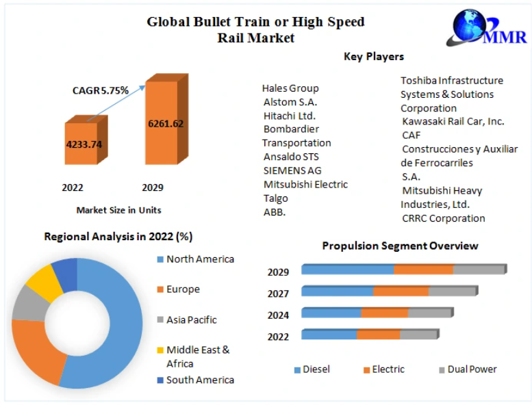 The Global Bullet Train / High-Speed Rail Market continues to gain momentum, with deployments expected to reach 6,261.62 units by 2029, rising from 4,233.74 units in 2022, at a CAGR of 5.75%. High-speed rail (HSR), characterized by operating speeds of 250 km/h and above, is rapidly transforming national transport systems by offering fast, reliable, and sustainable long-distance mobility.