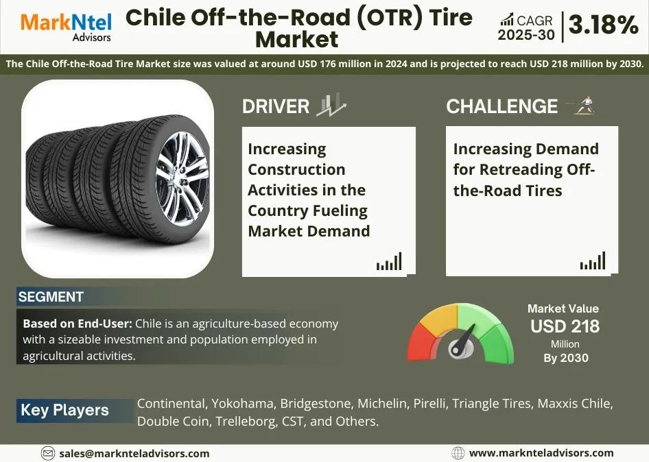 MarkNtel Advisors, a leading market research and consulting firm, has announced the release of its latest study titled Chile Off-the-Road (OTR) Tire Market Research Report: Forecast (2025–2030). This report provides a detailed assessment of the Chile Off-the-Road (OTR) Tire, covering its evolving dynamics, emerging trends, key growth drivers, major challenges, and competitive landscape.