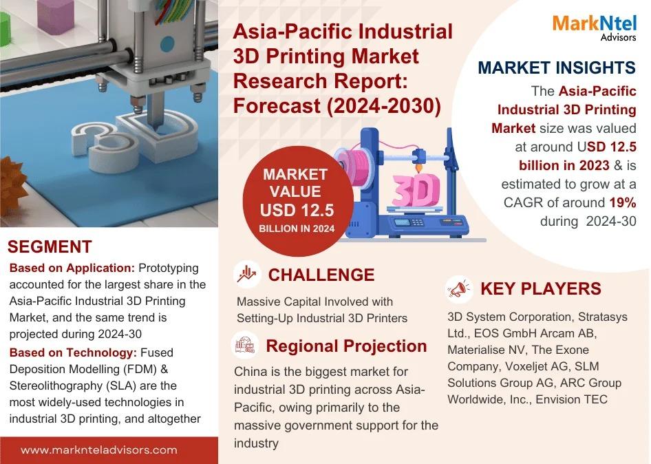 MarkNtel Advisors, a leading market research and consulting firm, has announced the release of its latest study titled Asia-Pacific Industrial 3D Printing Market Research Report: Forecast (2024–2030). This report provides a detailed assessment of the Asia-Pacific Industrial 3D Printing, covering its evolving dynamics, emerging trends, key growth drivers, major challenges, and competitive landscape.