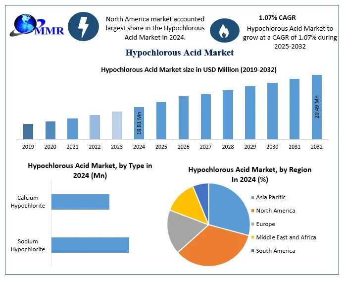 The market research report for Hypochlorous Acid provides comprehensive information on important factors, such as those that are expected to drive the industry growth and future obstacles. This report provides stakeholders with a thorough understanding of the investment opportunities, product offerings, and competitive landscape of the Hypochlorous Acid industry. Furthermore, it is covered in the research are the sector quantitative and qualitative aspects. Within the framework of the MMR research, regional markets for the Hypochlorous Acid Market are evaluated in great detail.