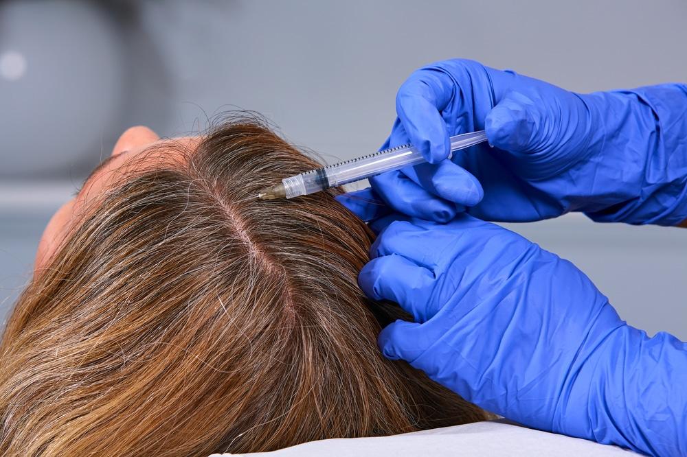 Injection: Platelet-rich plasma is injected into thinning areas of the scalp.