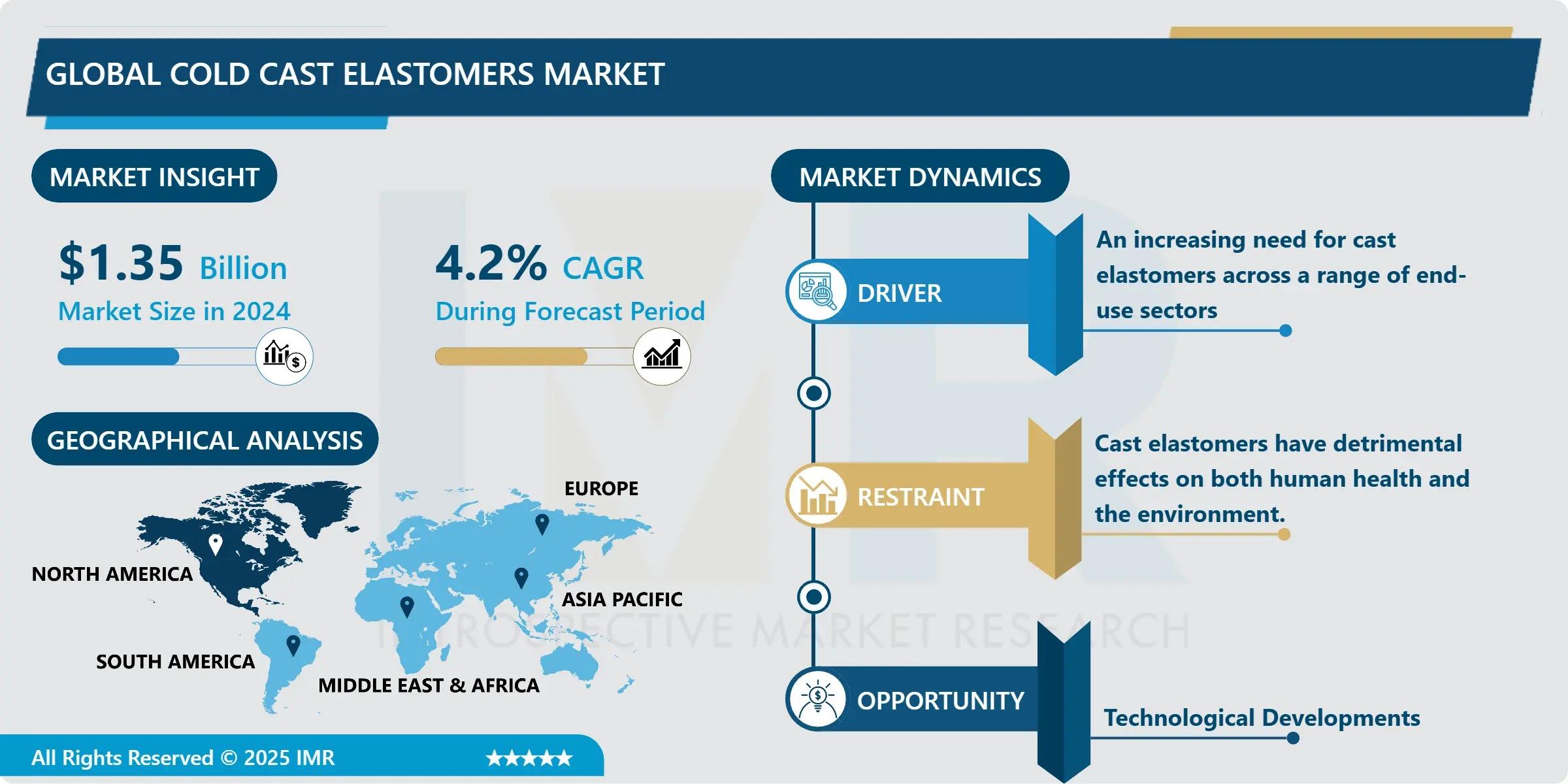ntrospective Market Research, a global authority in market intelligence, today released a comprehensive report on the Cold Cast Elastomers Market. The research highlights the market’s steady and vital expansion, propelled by the surging global requirement for high-performance, lightweight, and durable materials, particularly within the automotive, aviation, and oil & gas sectors.