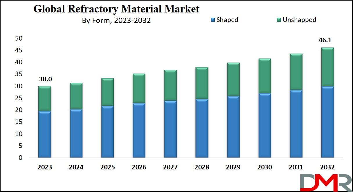 The refractory material market is segmented based on material type, form, application, and end-use industry. These segments highlight the diverse functionality and applications of refractories in high-temperature industrial operations.
