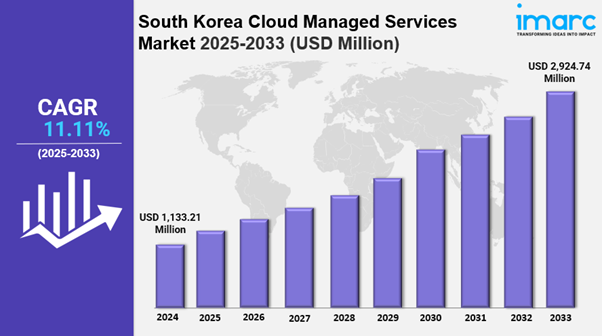 The South Korea cloud managed services market analysis was valued at USD 1,133.21 Million in 2024. Looking forward, IMARC Group estimates the market to reach USD 2,924.74 Million by 2033, exhibiting a (CAGR) of 11.11% from 2025-2033.