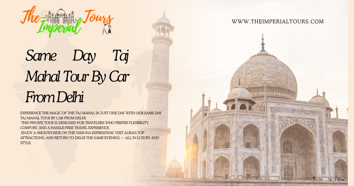If you wish to explore the world-famous Taj Mahal without taking days off from your routine, the Same Day Taj Mahal Tour by The Imperial Tour is the ideal choice. This specially curated one-day journey ensures you enjoy the grandeur of Agra’s top attractions while experiencing premium comfort and professional hospitality.
