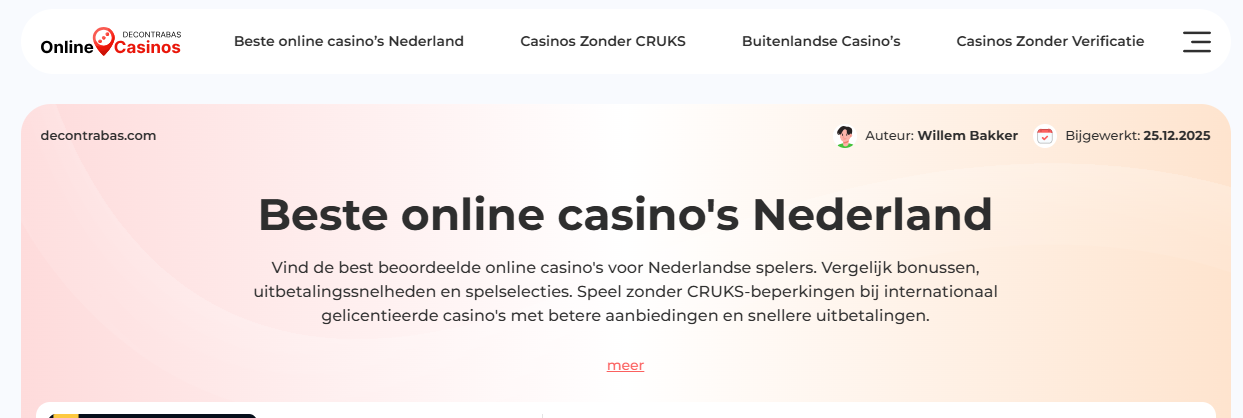 De Nederlandse online kansspelmarkt heeft sinds de invoering van de Wet Kansspelen op afstand (Koa) een enorme transformatie ondergaan. Voor spelers die op zoek zijn naar de Beste online casino's Nederland is de focus in 2025 verschoven van pure kwantiteit naar kwaliteit en vooral veiligheid. Met de recente verhoging van de kansspelbelasting naar 34,2% en aangescherpte regels rondom stortingslimieten, is het belangrijker dan ooit om een platform te kiezen dat niet alleen entertainment biedt, maar ook de integriteit van de speler waarborgt.