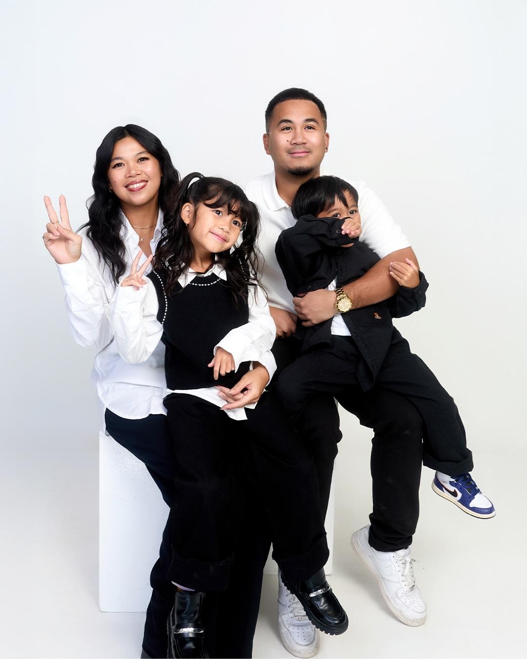 Neutral colors, coordinated outfits, and minimal patterns photograph best. Most studios provide styling guidance before the session.