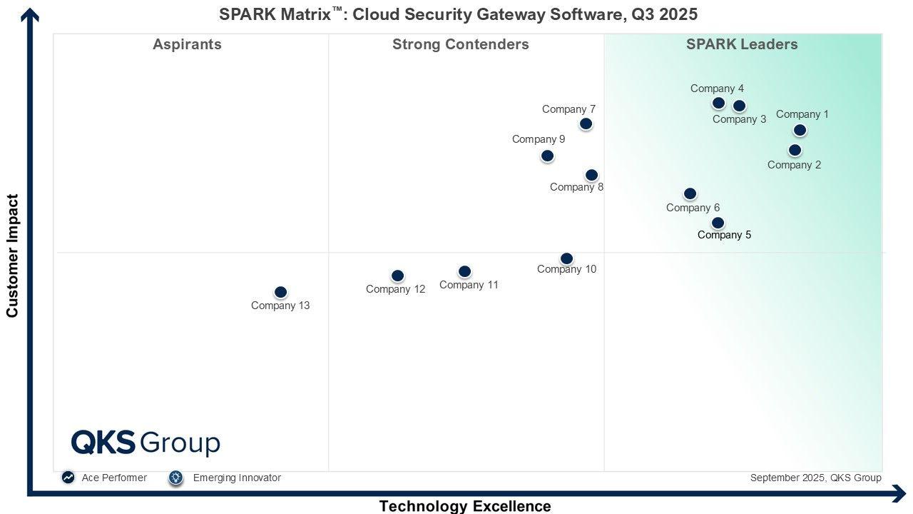 A central component of this research is the SPARK Matrix, QKS Group’s proprietary vendor evaluation and competitive benchmarking framework. The SPARK Matrix delivers an in-depth assessment of leading Cloud Security Gateway Software providers that have a global impact. It includes analysis of major players such as Barracuda Networks, Broadcom, Cisco, Forcepoint, Fortra, iboss, Menlo Security, Microsoft, Netskope, Palo Alto Networks, Sangfor Technologies, Trellix, and Zscaler. By positioning vendors based on technology excellence and customer impact, the SPARK Matrix equips decision-makers with a clear perspective on the strengths, capabilities, and strategic focus of each provider.