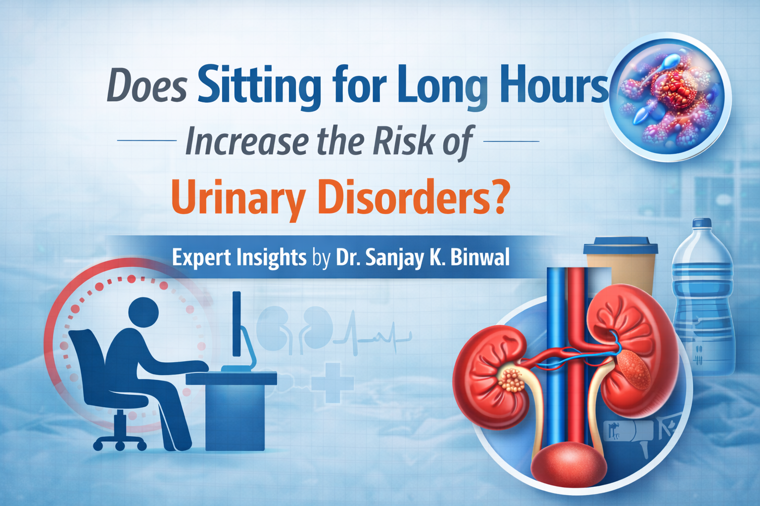 According to Dr. Sanjay K. Binwal, a senior Urologist in Jaipur, prolonged sitting itself may not cause disease directly, but it creates conditions that increase the risk of urinary problems over time.