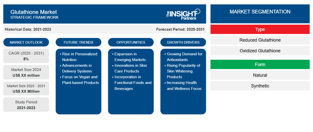 The Insight Partners recently announced the release of the market research titled Glutathione Market Outlook to 2031 | Share, Size, and Growth. The report is a stop solution for companies operating in the Glutathione market. The report involves details on key segments, market players, precise market revenue statistics, and a roadmap that assists companies in advancing their offerings and preparing for the upcoming decade. Listing out the opportunities in the market, this report intends to prepare businesses for the market dynamics in an estimated period.