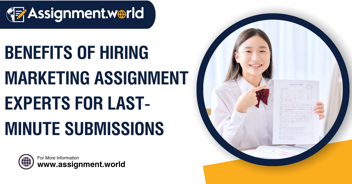 Meeting academic deadlines is a challenge many marketing students face, especially when juggling multiple subjects, internships, and personal responsibilities. In these critical moments, hiring professional marketing assignment help becomes an intelligent solution. Engaging a qualified marketing assignment expert not only ensures timely submissions but also significantly improves the quality, relevance, and academic value of your work. Here's how our expert-driven marketing assignment services prove beneficial when time is against you.