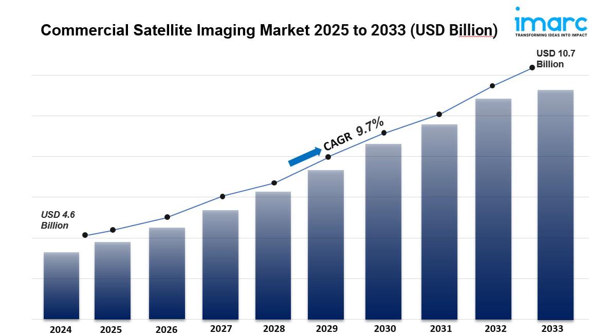 The global commercial satellite imaging market size was valued at USD 4.6 Billion in 2024. Looking forward, IMARC Group estimates the market to reach USD 10.7 Billion by 2033, exhibiting a CAGR of 9.7% from 2025-2033. North America currently dominates the market, holding a market share of 38.7% in 2024.