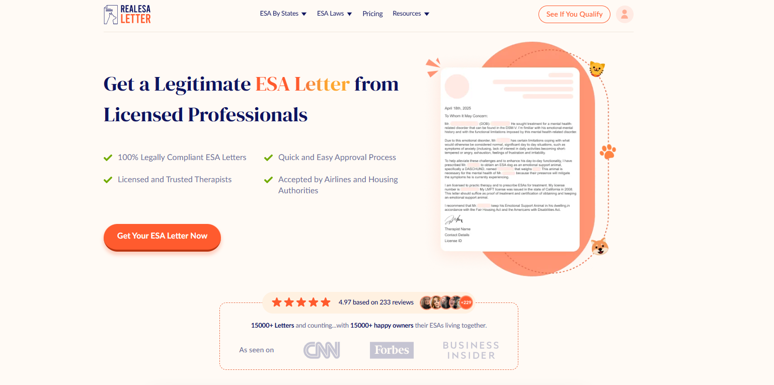 Exact-match service – When you only need an ESA letter, having a provider laser-focused on that service is a major advantage. RealesaLetter’s design removes unnecessary steps.