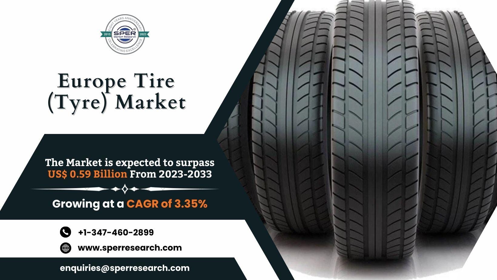 According to SPER market research “Europe Tire (Tyre) Market Size- By Vehicle Type, By Demand Category, By Tire Construction Type, By Rim Size, By Sales Channel- Regional Outlook, Competitive Strategies and Segment Forecast to 2033” states that the Europe Tire (Tyre) Market is estimated to reach USD 0.59 billion by 2033 with a CAGR 3.35%.