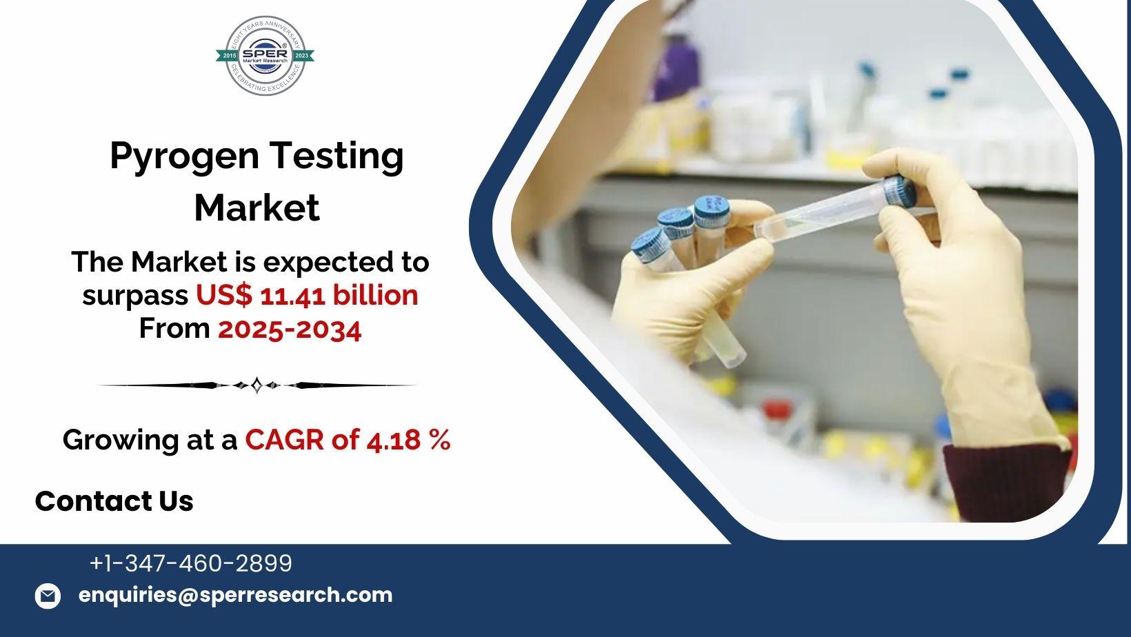 According to SPER market research, ‘Pyrogen Testing Market Growth, Size, Trends Analysis - By Product, By Test Type, By End-User - Regional Outlook, Competitive Strategies and Segment Forecast to 2034’ state that the Pyrogen Testing Market is estimated to reach USD 4.18 billion by 2034 with a CAGR of 11.41%.
