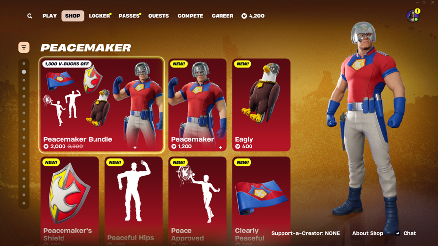 Overall, acquiring the Peacemaker skin is a great way to stand out in Fortnite's Battle Royale mode, blending DC's superhero flair with the game's dynamic gameplay. Stay tuned to the shop rotations, and gear up to bring peace—or chaos—to your next match.
