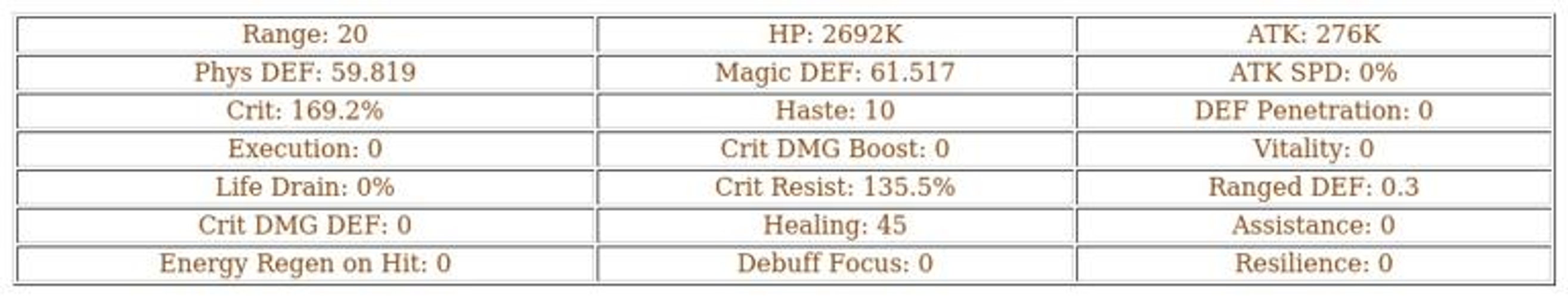 Damian can also utilize a toy chariot to aid allies by playing music, which heals the weakest ally within three tiles for 120% of their health four times. If no chariot is available, Damian restores himself with 300 energy. As he levels up, the healing percentage increases from 130% at level 71 to 150% at level 191.