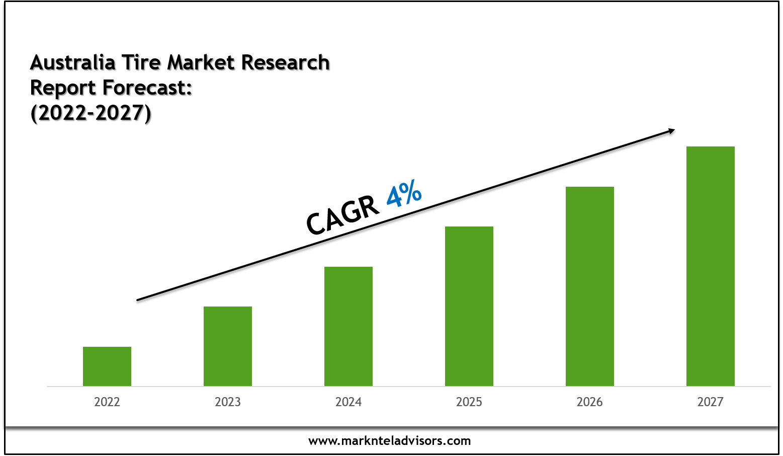 The Australia Tire Market is projected to grow at around 4% CAGR during the forecast period, i.e., 2022-27. The growth of the market is likely to be driven by the rapidly increasing number of large-scale construction projects, including the development of roads, highways, & buildings, among others, owing to the mounting focus of the Australian government on infrastructural developments. It, in turn, is augmenting the demand for several heavy commercial vehicles.