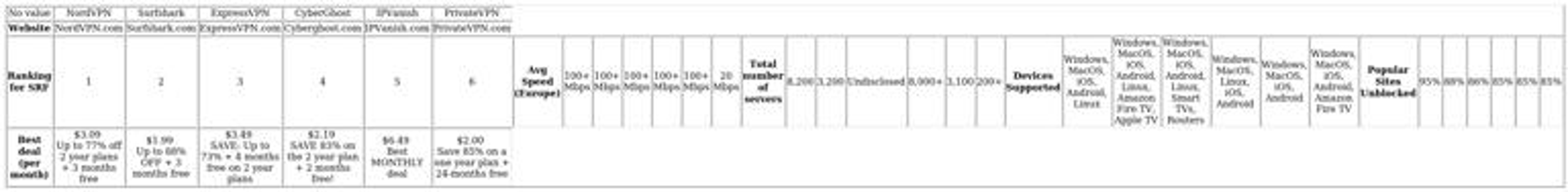 - Surfshark — Budget-friendly option that allows unlimited simultaneous connections and unblocks major streaming services.\n