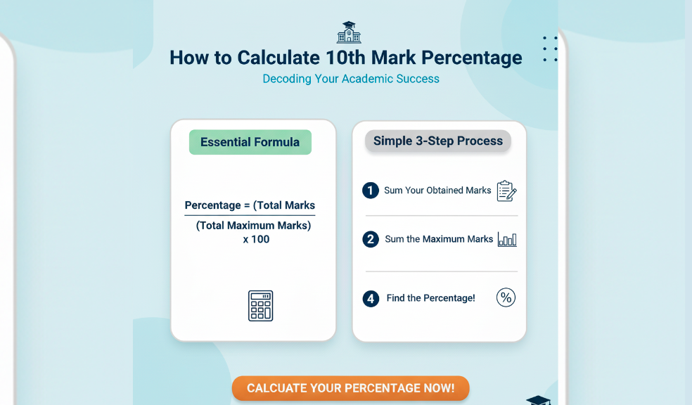 The process to determine your 10th mark percentage is based on a universal mathematical principle: comparing the marks you achieved against the total possible marks. This method remains consistent regardless of the board (CBSE, ICSE, or any State Board), although the specific subject count and maximum marks might vary.