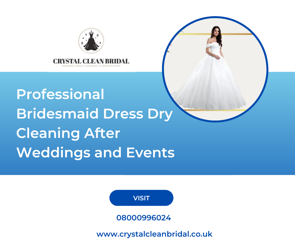 https://crystalcleanbridal.co.uk/products/preservation-packagesBridesmaid dress dry cleaning offers expert care to keep your gown looking flawless long after the celebration. Our specialists use gentle, fabric-safe cleaning methods to remove stains, makeup marks, and general wear without compromising colour, texture, or embellishments. Each dress is carefully inspected to determine the best treatment, ensuring delicate materials like chiffon, satin, lace, and silk remain in perfect condition. Whether you’re preserving it as a keepsake or planning to wear it again, Crystal Clean Bridal Ltd provides a professional, high-quality service that refreshes and restores your bridesmaid dress to its original elegance. https://crystalcleanbridal.co.uk/products/preservation-packages0 Comments 0 Shares - At Crystal Clean Bridal Ltd, we offer professional bridesmaid dress dry cleaning designed to restore each gown to perfect condition. Whether your dress is made from chiffon, satin, silk or embellished fabrics, our specialists use gentle, advanced cleaning methods tailored to its unique needs. We carefully remove makeup marks, spills and general wear from the celebration, ensuring every dress looks fresh, bright and beautifully finished. Each gown is inspected, treated and hand-pressed for flawless results. Ideal for rewearing, preserving or returning to a boutique, our expert service keeps your bridesmaid dresses looking elegant, clean and ready for any occasion.