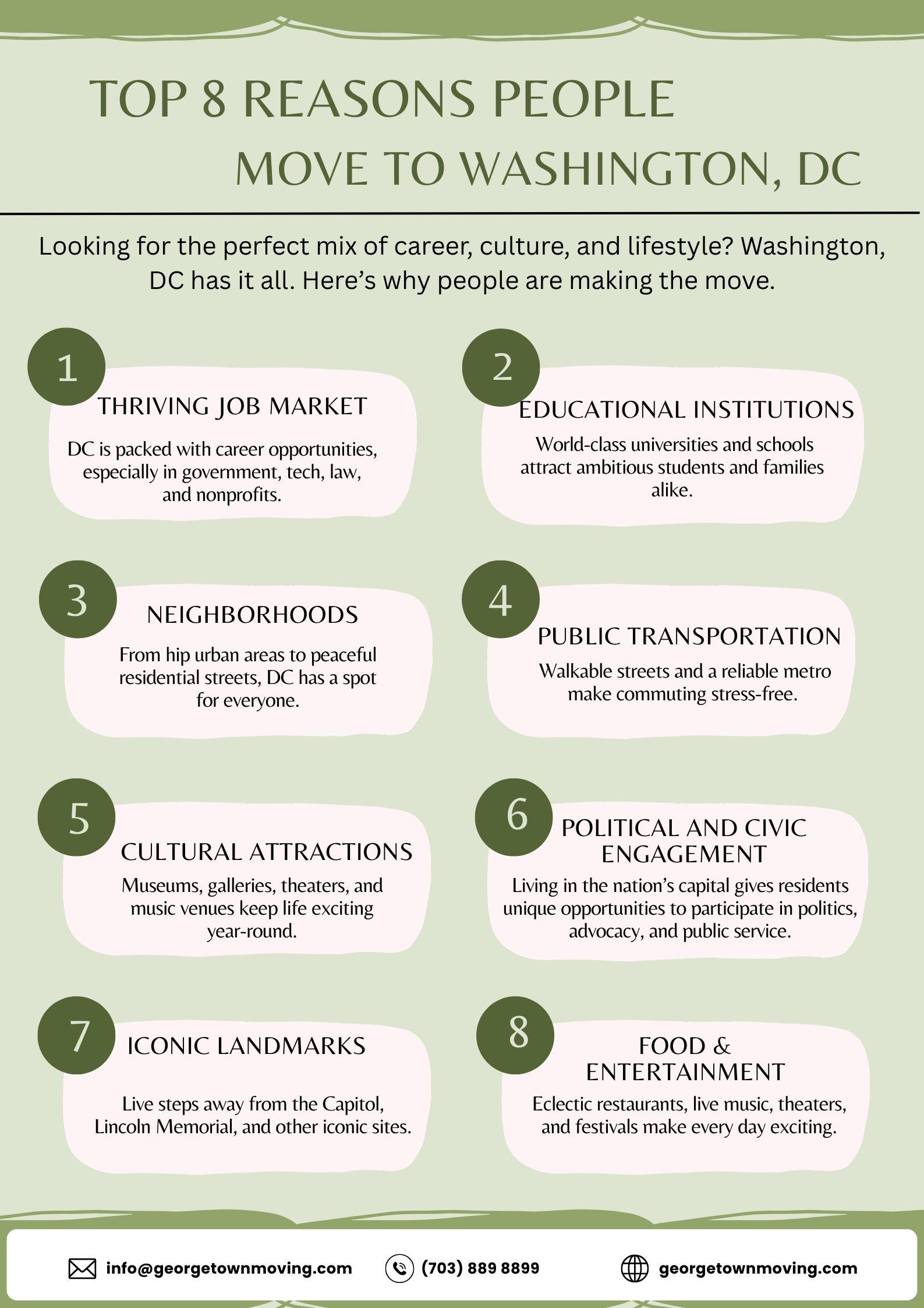 - Planning a move to Washington, DC? Discover tips, trusted movers, and expert advice to make your relocation smooth and stress-free. From packing to navigating neighborhoods, moving to DC has never been easier!