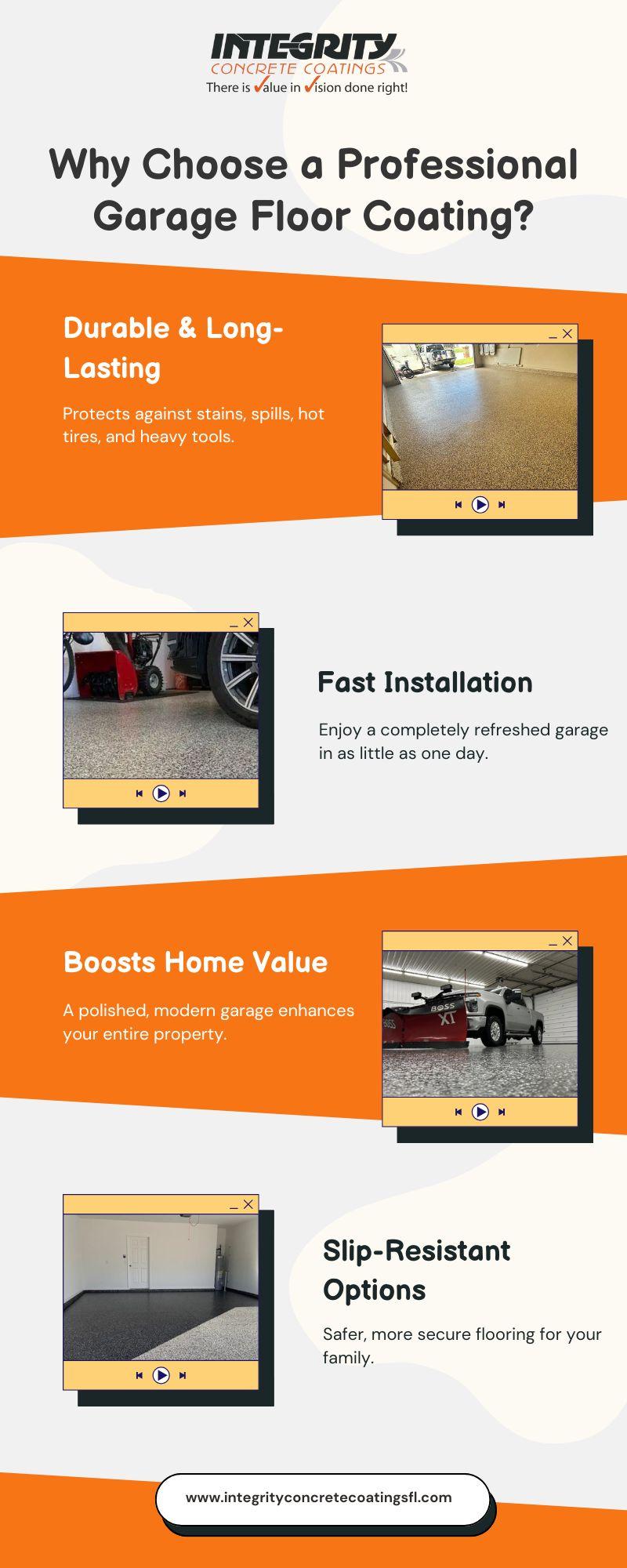 Visit - https://integrityconcretecoatingsfl.com/garage-floor-coating/Transform your garage into a cleaner, stronger, and more modern space with high-quality garage floor coating solutions. Designed to withstand daily wear, spills, heat, and heavy equipment, our coatings add unmatched durability while enhancing the overall look of your garage. Enjoy a surface that’s easy to clean, resistant to damage, and built to last giving your home both style and long-term protection. Visit - https://integrityconcretecoatingsfl.com/garage-floor-coating/0 Comments 0 Shares - If you’re tired of floors that fade, crack, or lose their shine, it’s time to level up with polyaspartic floor coating. This advanced coating delivers incredible durability, UV stability, and a sleek finish that instantly transforms any space garage, patio, or commercial floor. Plus, it cures fast, meaning you get a beautiful, high-performance surface without long wait times.