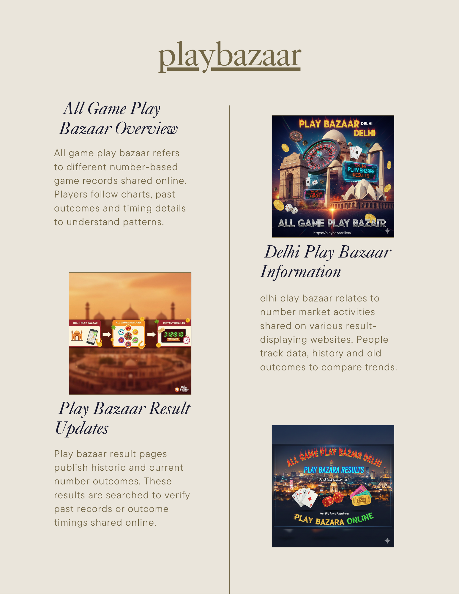 Gali Play Bazaar features satta gaming linked to Gali markets with structured charts, old records, and guessing ideas. Gamers search results quickly using https://playbazaar.live/