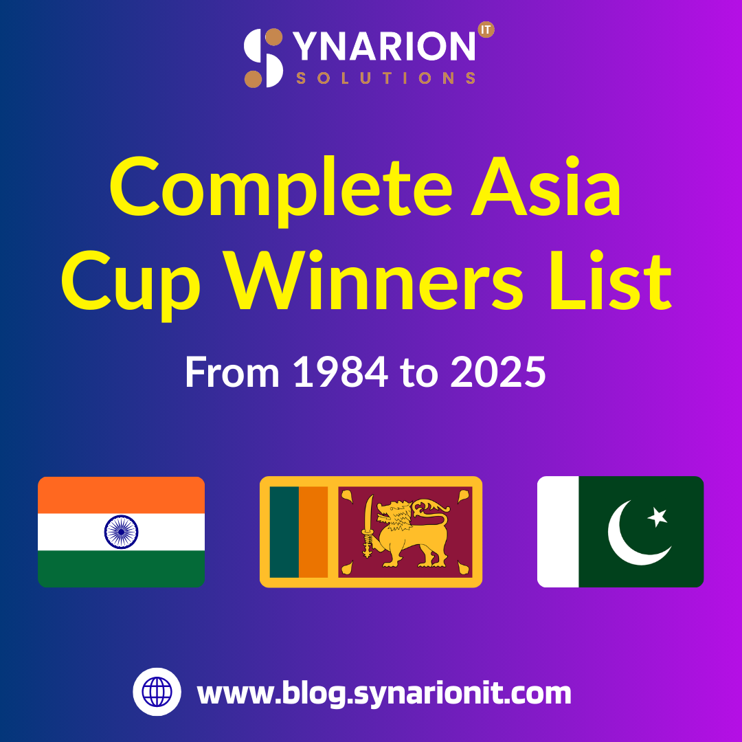 Explore Full Blog: https://blog.synarionit.com/asia-cup-winners-list/Complete Asia Cup Winners List The Asia Cup is a prestigious cricket tournament featuring top Asian nations. Since its inception in 1984, it has seen fierce competition between cricketing giants like India, Sri Lanka, and Pakistan. India holds the most titles, followed by Sri Lanka. The tournament alternates between ODI and T20 formats, showcasing Asia’s best talent. This blog provides a complete list of Asia Cup winners over the years, offering a quick reference for fans and cricket enthusiasts alike. Explore Full Blog: https://blog.synarionit.com/asia-cup-winners-list/0 Comments 0 Shares - GST Reforms: What the Two-Slab Tax Overhaul Means?