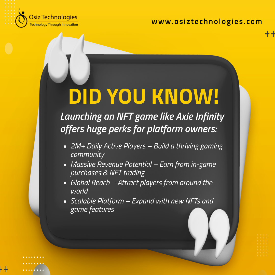 Launch your own #game like #AxieInfinity with a ready-made #AxieInfinityCloneScript, attract a global player base, and monetize through in-game purchases and #NFTtrading. Start your journey today:
