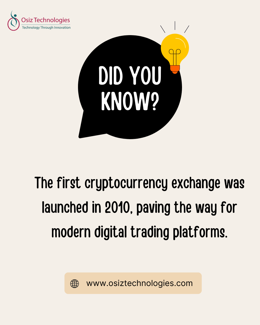 Marking the beginning of modern digital trading platforms. Today, crypto exchanges have evolved to include advanced features, higher security, and seamless user experiences. 馃殌 Ready to build your own #cryptoexchange and join the digital revolution? Start today and make your mark in the blockchain world! 馃憠 https://www.osiztechnologies.com/cryptocurrency-exchange-software-development #CryptoExchange #BlockchainTechnology #CryptoTrading #DigitalFinance #CryptoDevelopment #FinTechInnovation #Cryptocurrency